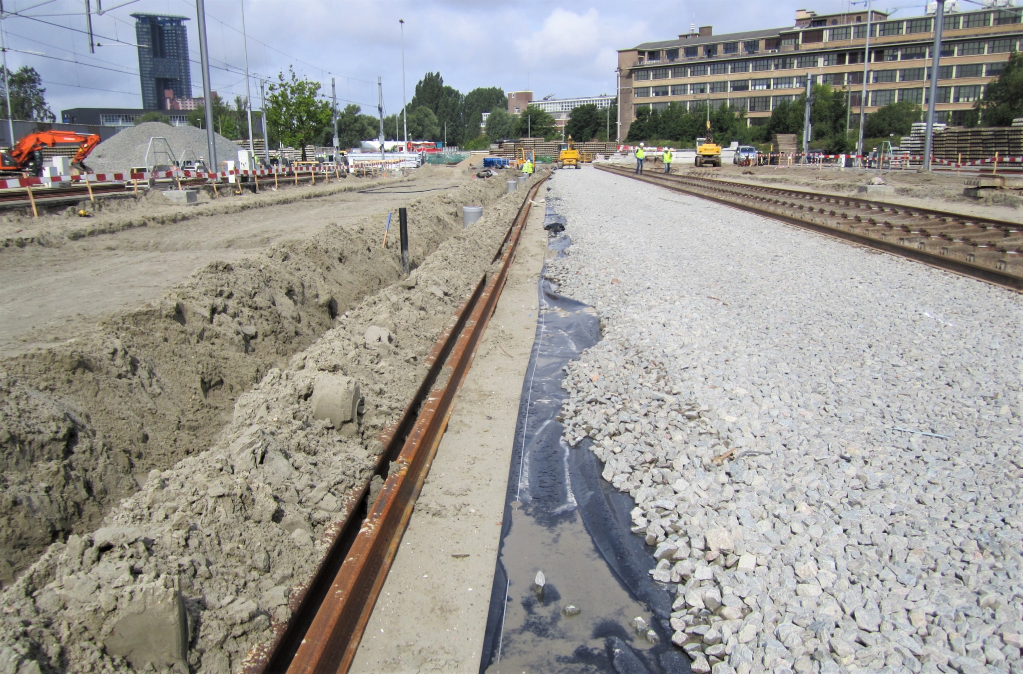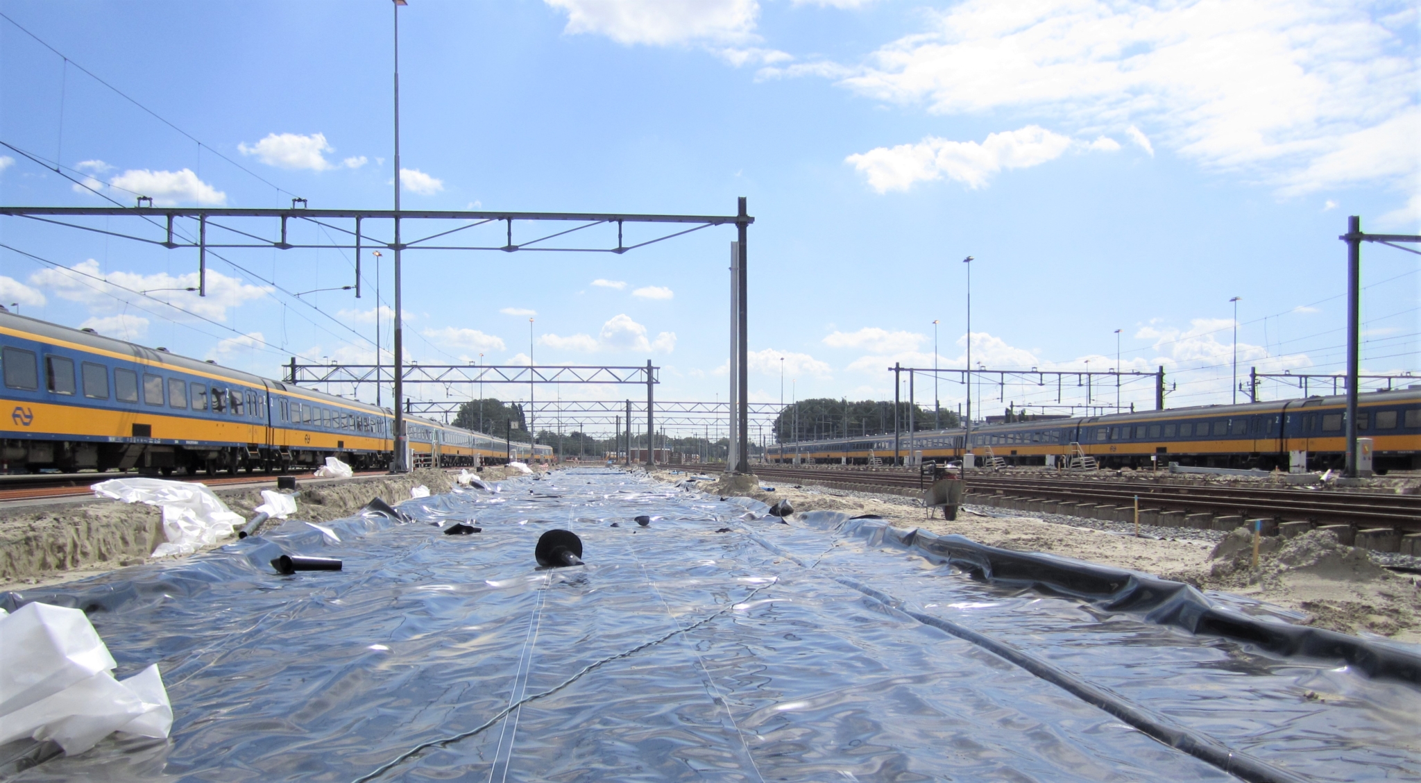 NPI aplica láminas plásticas en el sector de la ingeniería civil para muchos propósitos, incluidos el sellado, la protección del suelo y la gestión de aguas subterráneas. Hace unos años, NPI fabricó e instaló una construcción de lámina en una línea ferroviaria en La Haya.