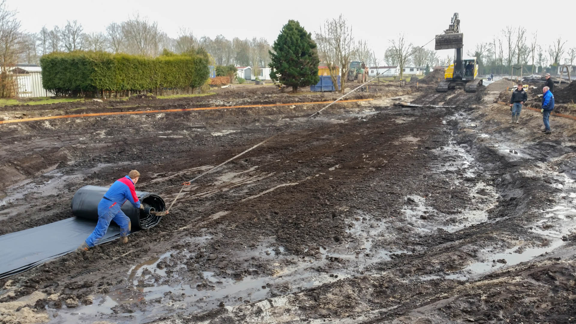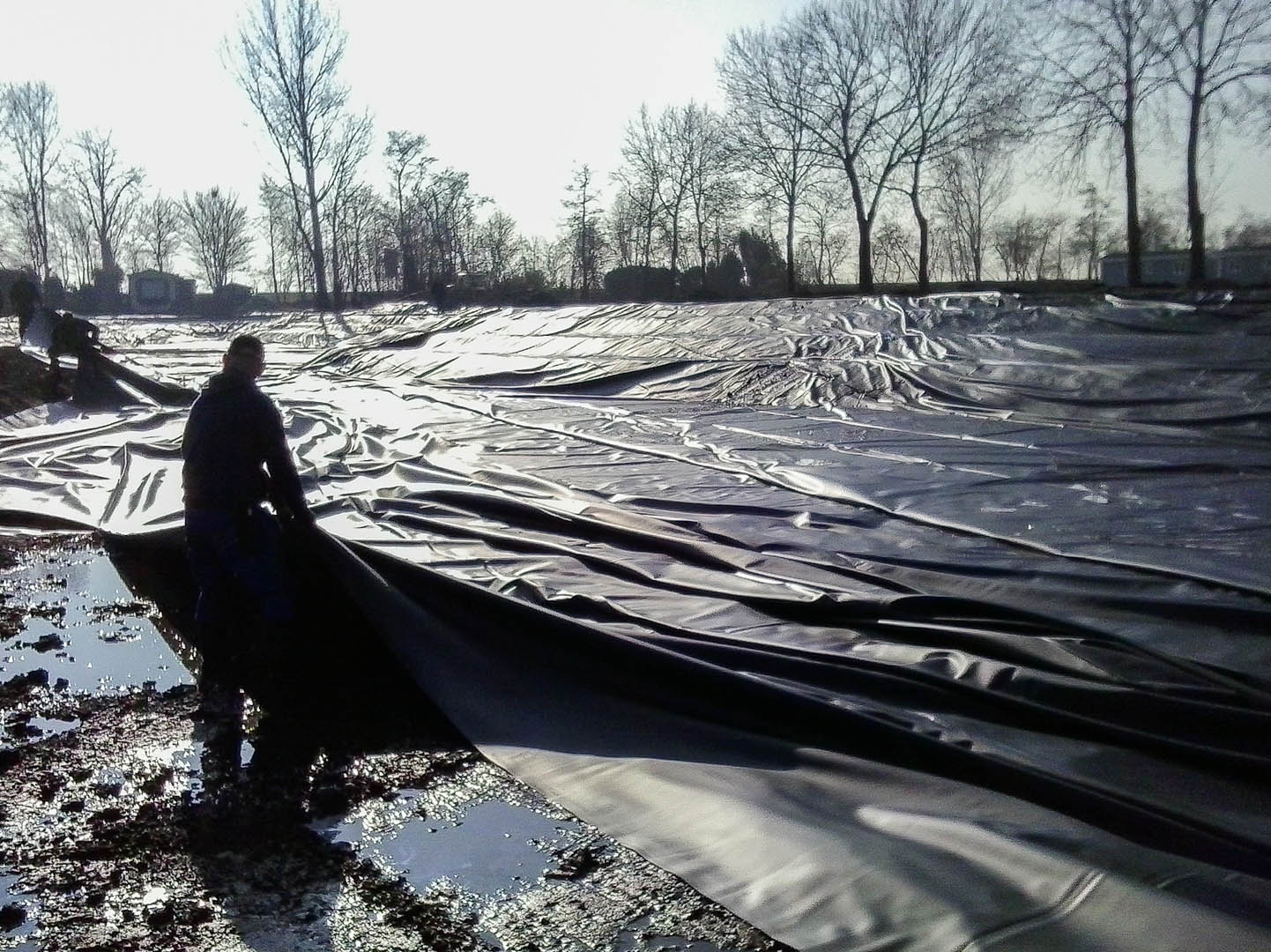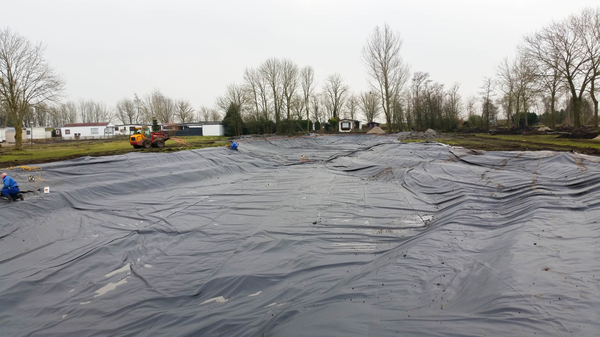 Para un pintoresco parque de vacaciones cerca del Lago Veluwe, NPI creó en 2015 la lámina para un precioso estanque. La lámina para estanque de PVC de 1 mm se prefabricó en nuestro centro de producción en Tzummarum. La lámina se entregó por partes al parque de vacaciones y se soldó in situ. Fue un reto soldar la lámina para estanque in situ debido al alto nivel freático. Pero el resultado final ha sido igualmente excelente.
