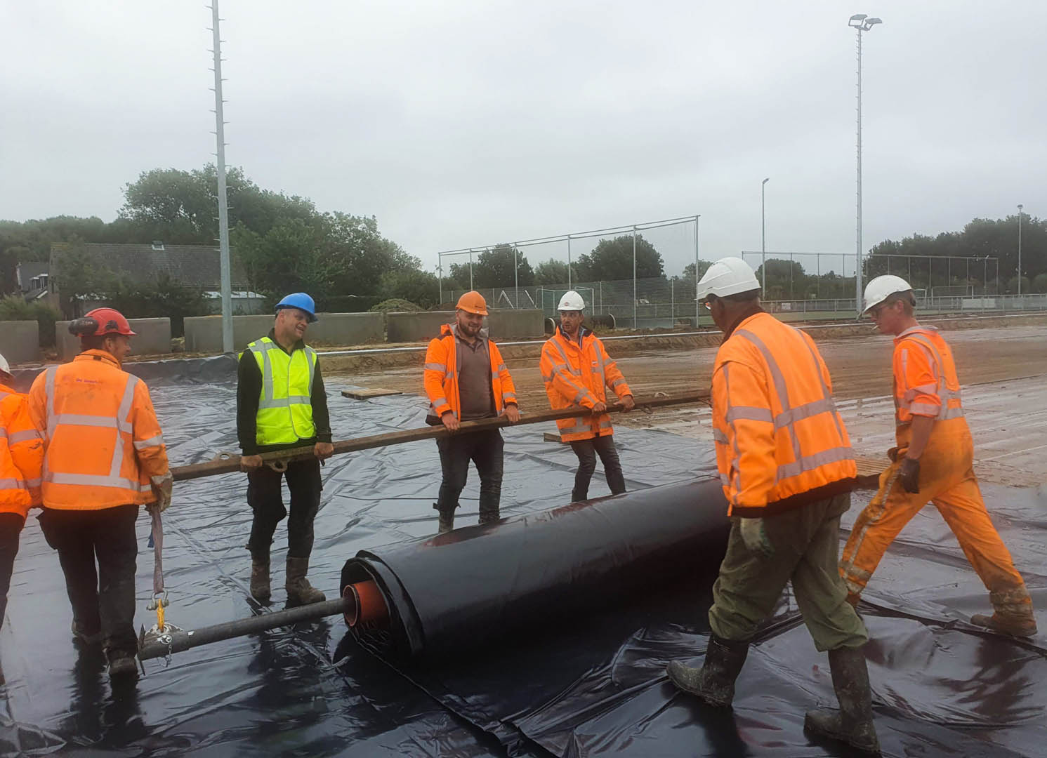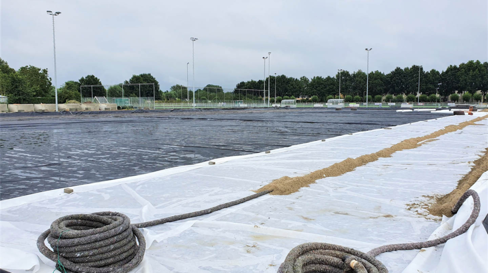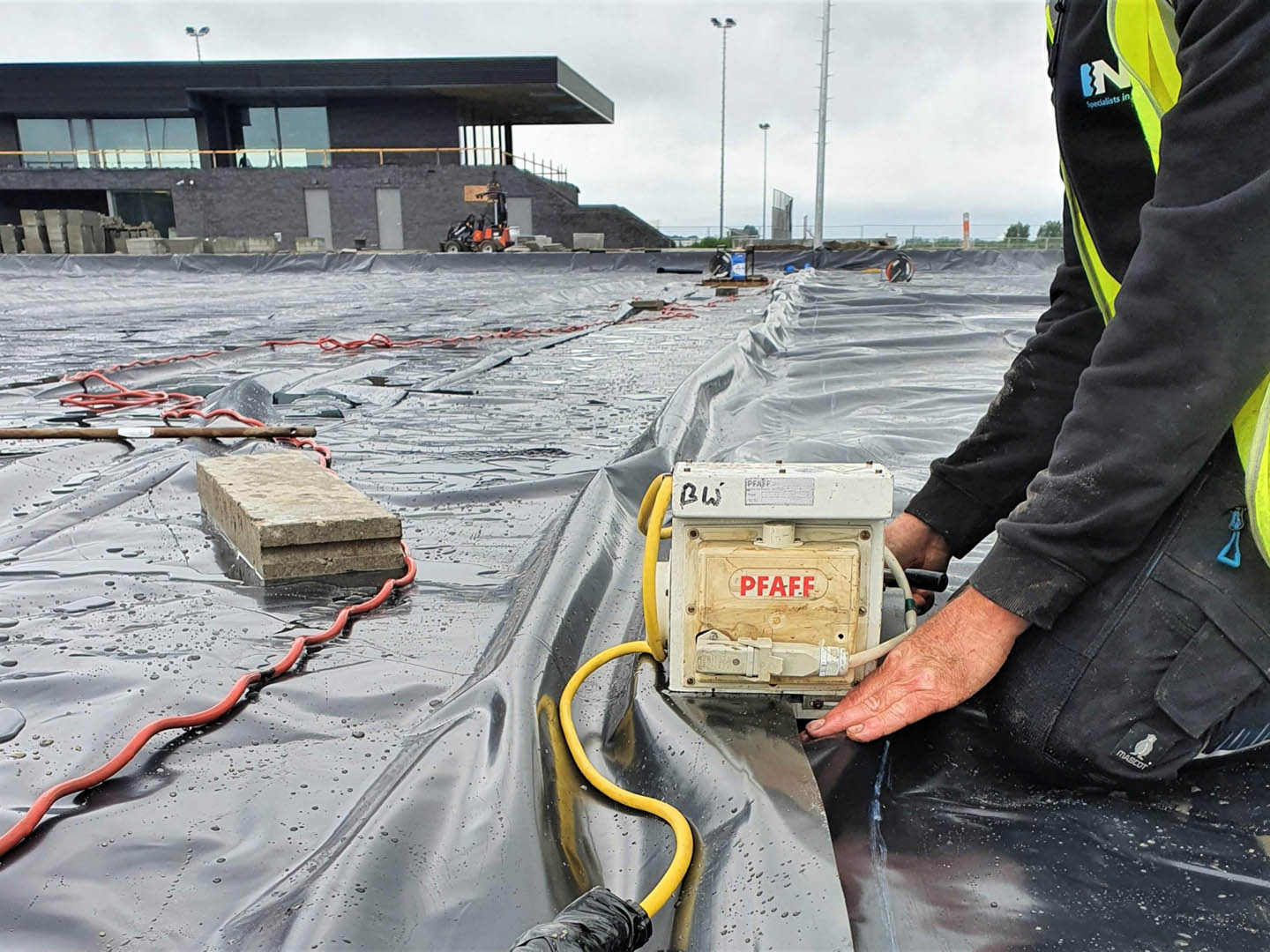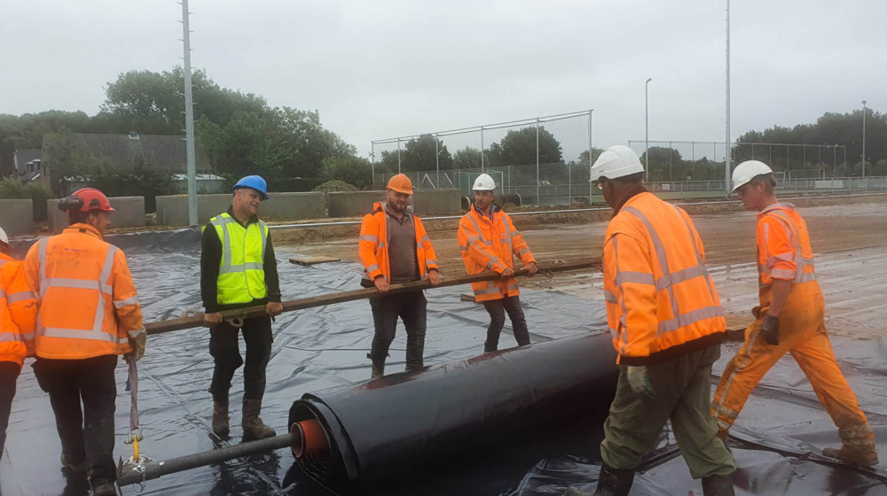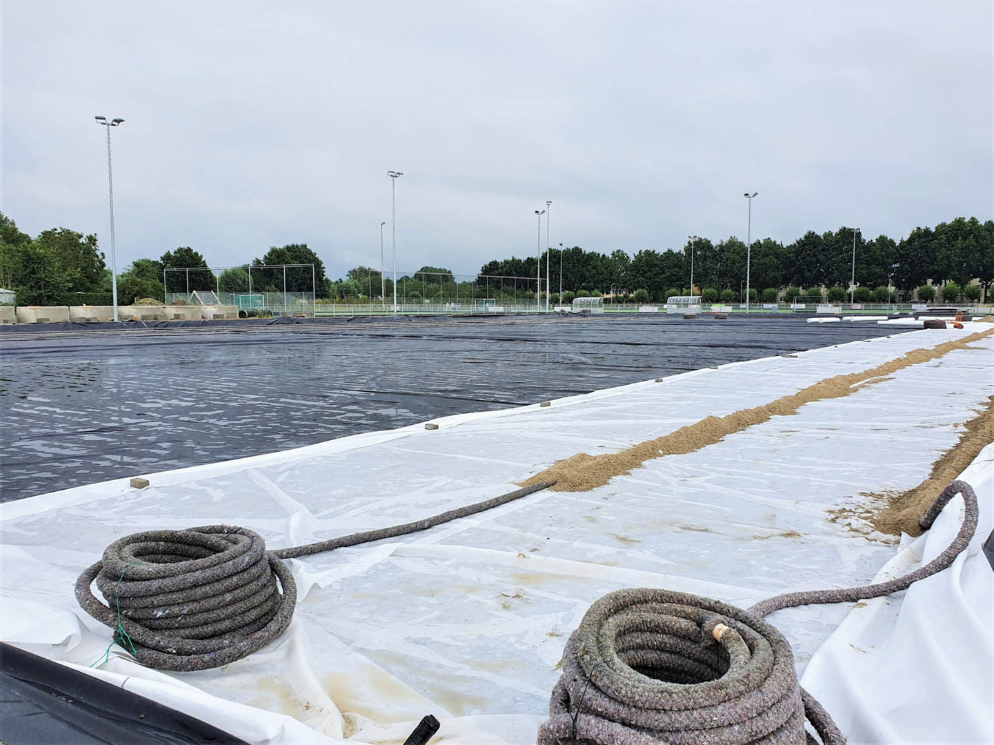 Het is belangrijk dat de ondergrond bij een hockeyveld stabiel en waterdoorlatend is. Daarom heeft de NPI in Leerdam op een hockeyveld folie aangebracht ten behoeve van een drainagesysteem.