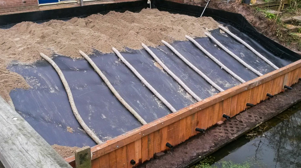 Om korte metten met deze woekeraar te maken is in meerdere tuinen grond afgegraven. Aan de zijkanten van de afgegraven grond zijn HDPE platen van 6 mm geplaatst, en op de bodem van de uitgraving is HDPE folie van 2 mm geplaatst. Daarop is drainage aangebracht en werd de afgegraven grond weer aangevuld. Zo is er een dichte kuip gecreƫerd, vrij van de Japanse Duizendknoop.