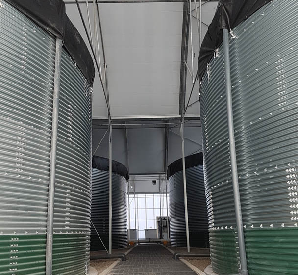 Onlangs heeft de NPI vier tanks van 760 m3 geleverd in Betulia, Jalisco, Mexico. Deze klant heeft kassen van wereldklasse en levert gedurende het hele jaar de beste tomaten en paprika’s. Om de kassen van irrigatiewater te voorzien, werden de installaties uitgerust met vier tanks. Twee tanks zorgen voor vers water en de andere twee tanks worden gebruikt voor het opslaan van bemest water. Met een diameter van 14,63 meter en een hoogte van 4,57 meter heeft het een opslagcapaciteit van twee dagen.