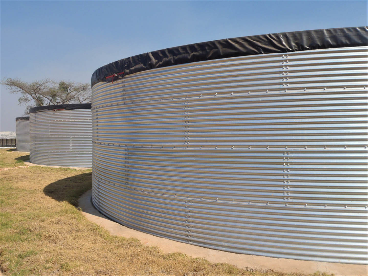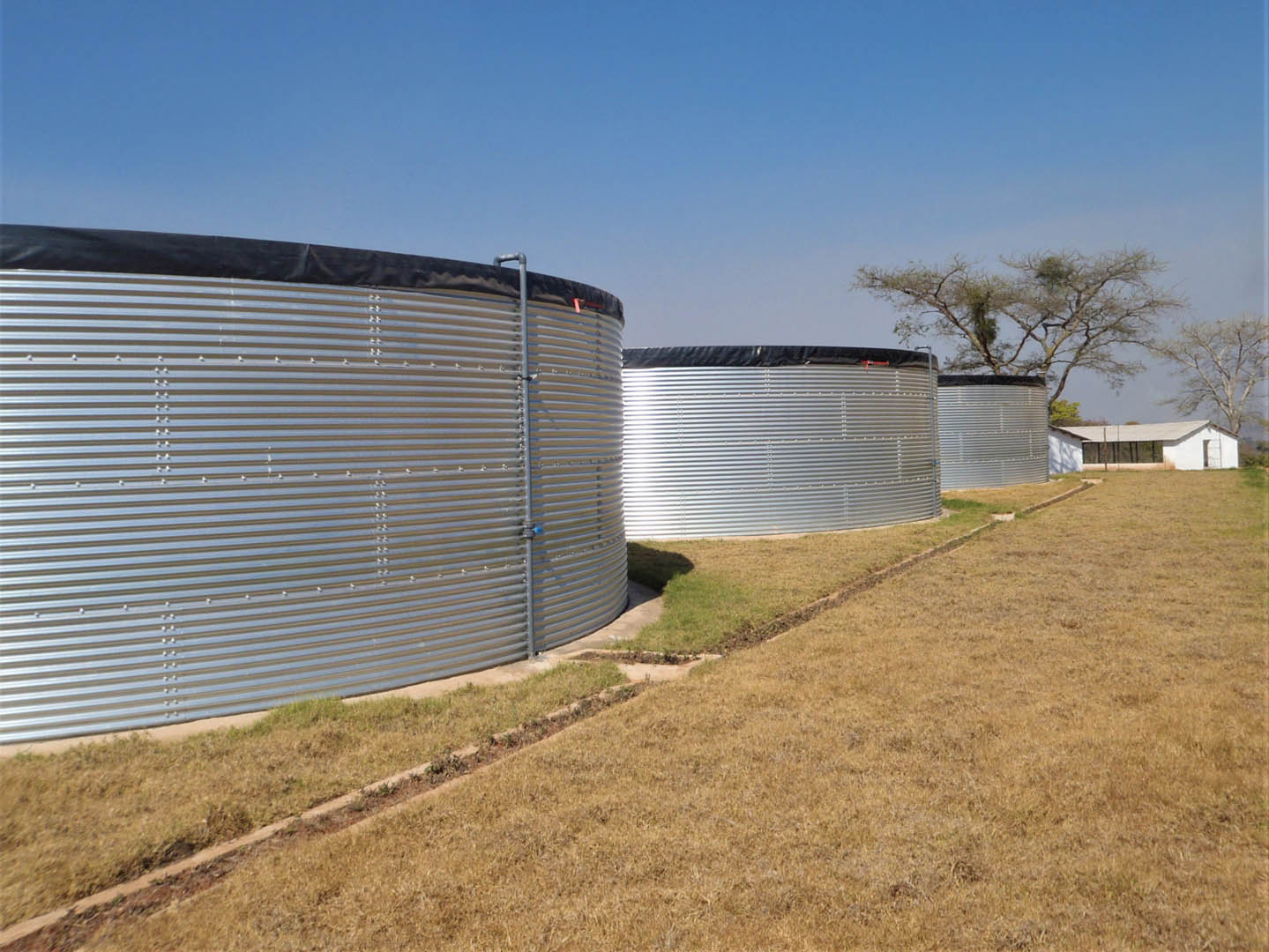 NPI supplied five tanks to this client in Zimbabwe via a dealer. This client has a combined arable and livestock farm, and wished to store water both for irrigation and as drinking water for the livestock. Two of the five installed tanks are used for crop irrigation, while the other three are used to store drinking water for the poultry/livestock at another location.
