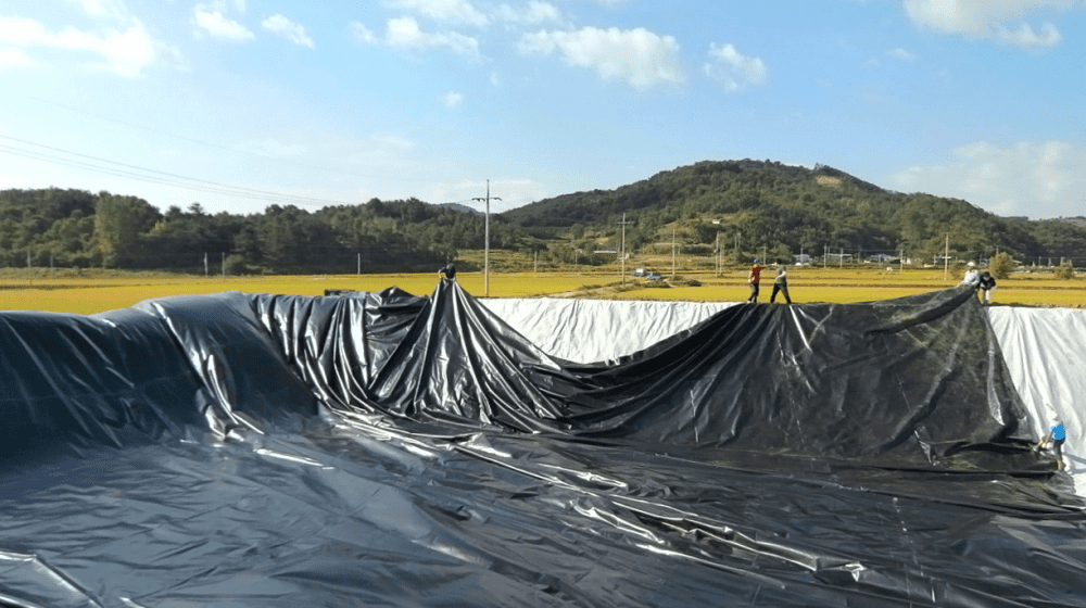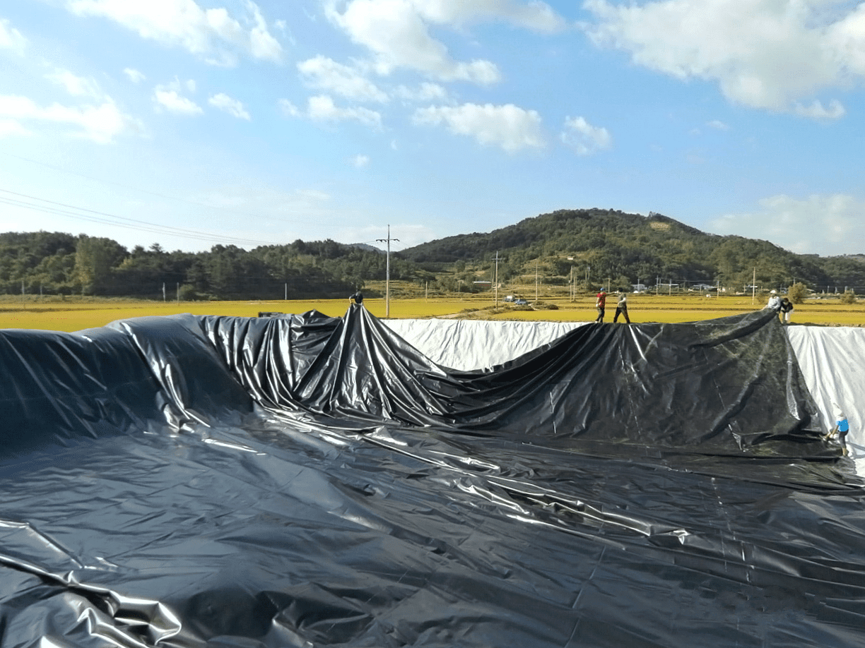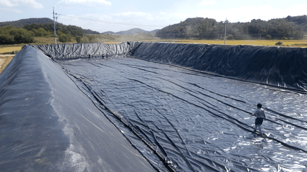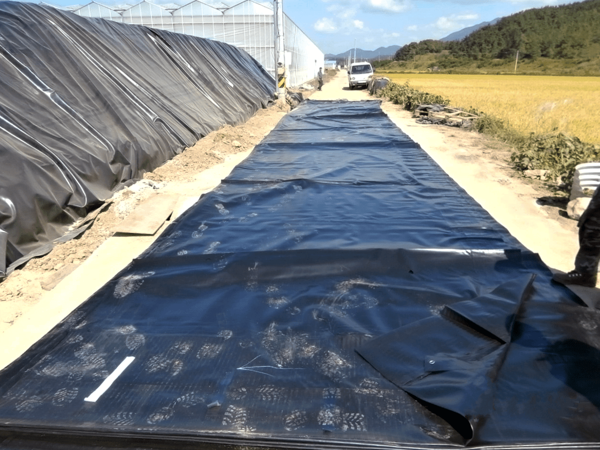 For a greenhouse complex in South Korea, NPI supplied and installed a liner for an excavated resevoir. This order involved a comprehensive package, including an ENPEX FPP 0,75 liner of 81 x 36 meter, protective fleece, a floating anti-algae cover and geotextile bank protection. Also four FPP conical outlets were delivered and installed.