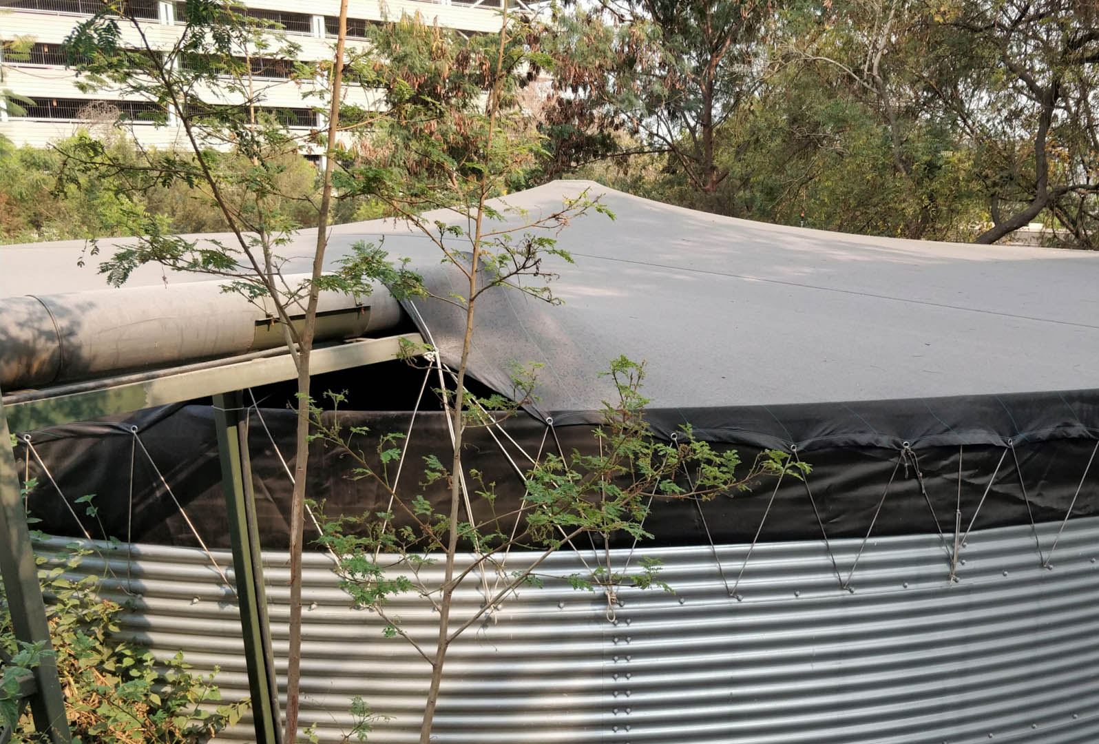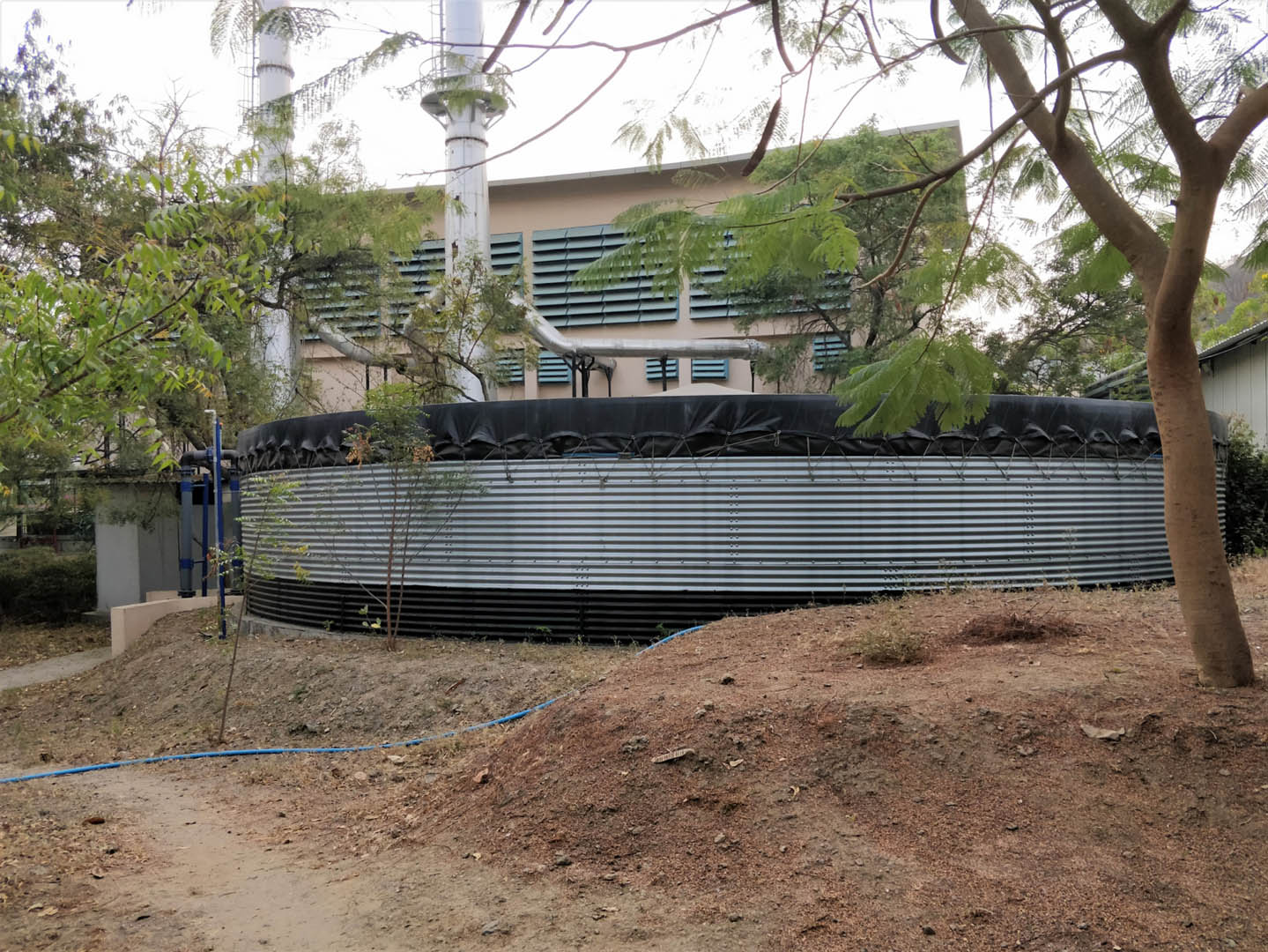 In the city of Pune in India, we supplied a tank for the storage of rainwater via a dealer. On the technical campus of the university in Pune, rainwater that falls on the roofs and car park is collected in an NPI water tank. This water is subsequently used on site as irrigation water and for flushing the toilets. This tank is fitted with a stretched anti-algae cover.