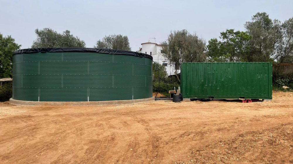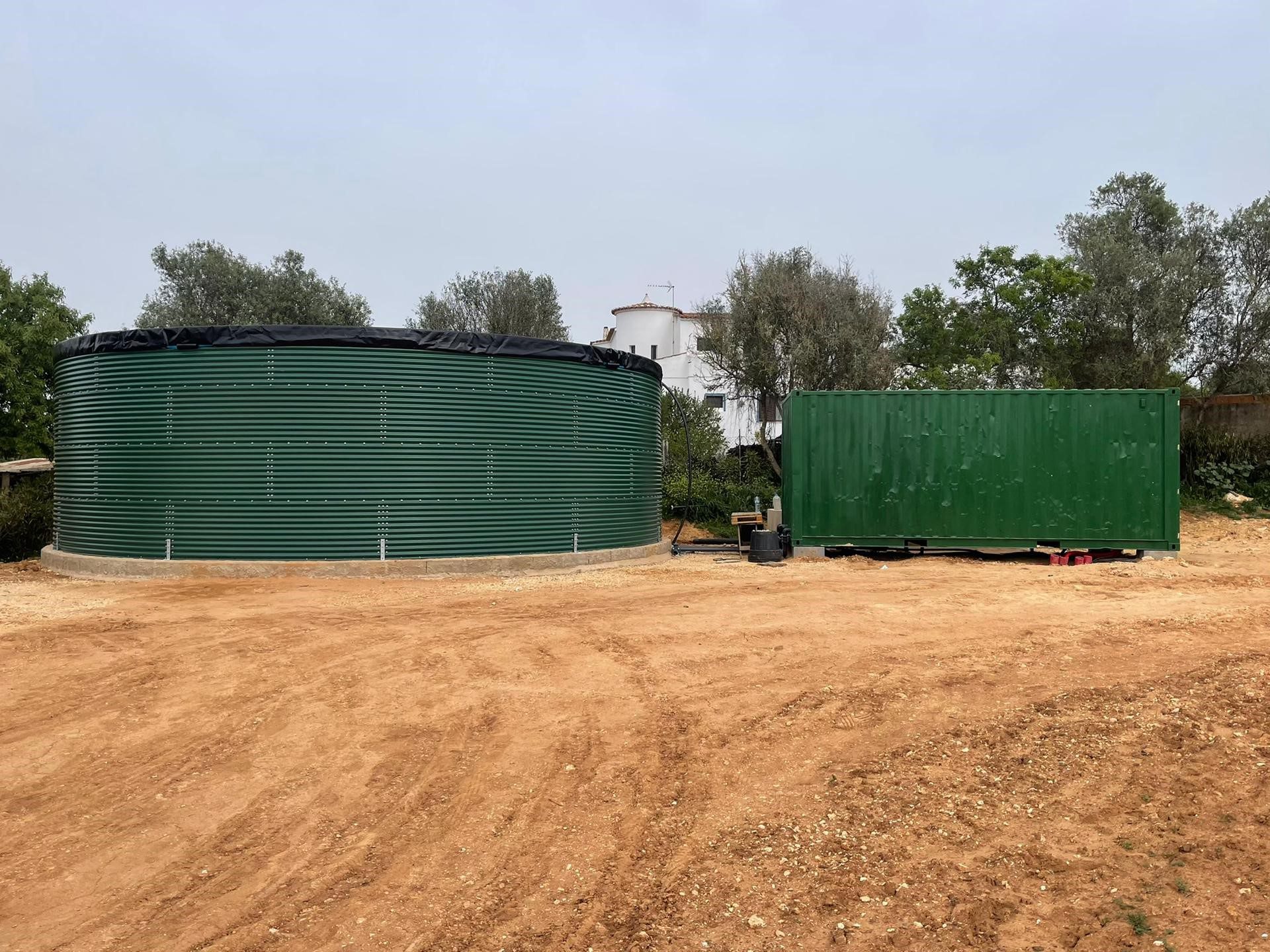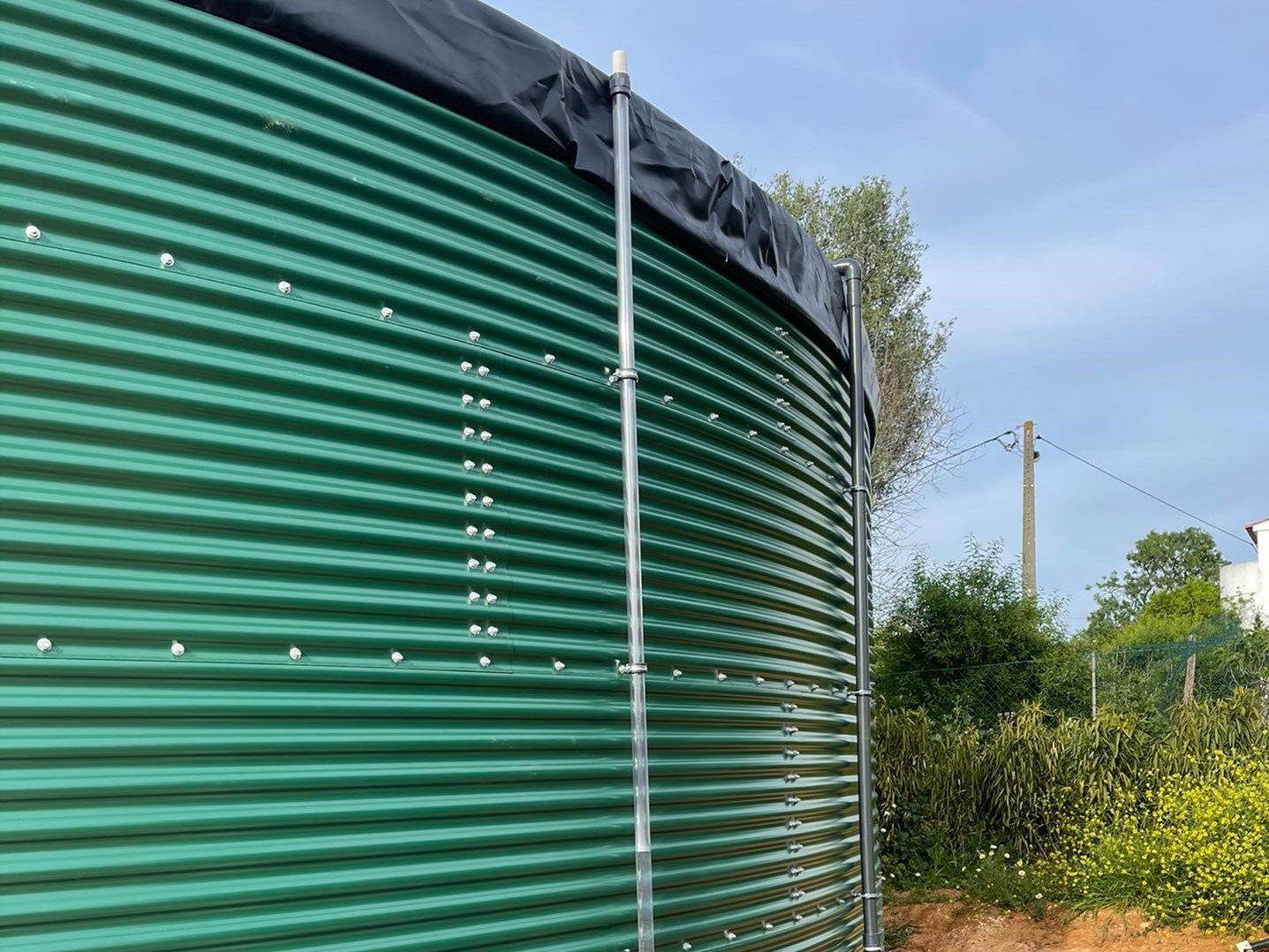 A fully coated water tank was installed in the south of Portugal recently. The tank of 10,06 x 3,05 m provides irrigation water for the surrounding 5 hectares of vineyard. This client opted for this relatively large water tank in proportion to the size of the area since the boreholes aren’t so strong. Therefore continuous pumping is needed to have an adequate water supply for the vines, especially in dry periods.