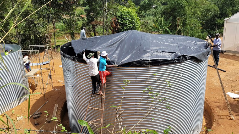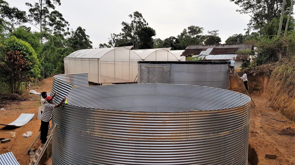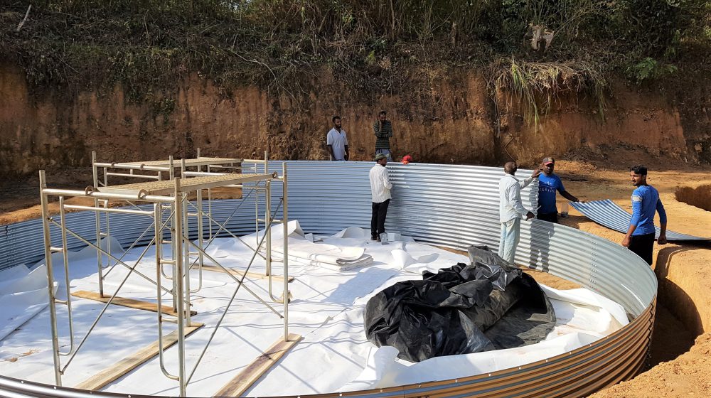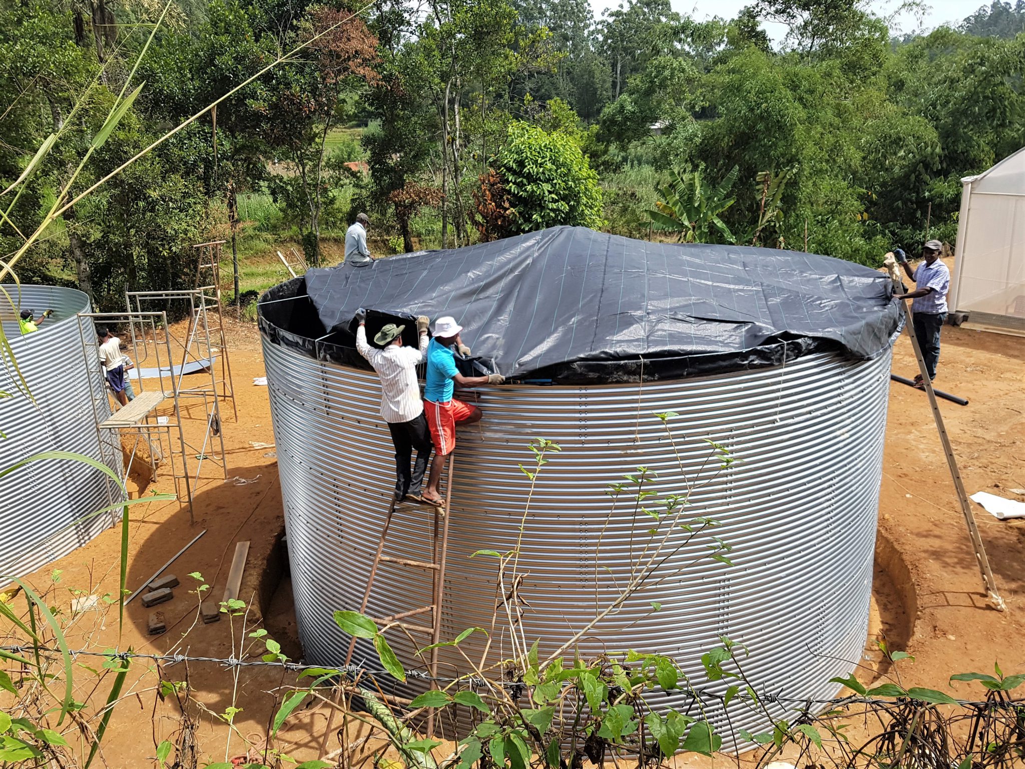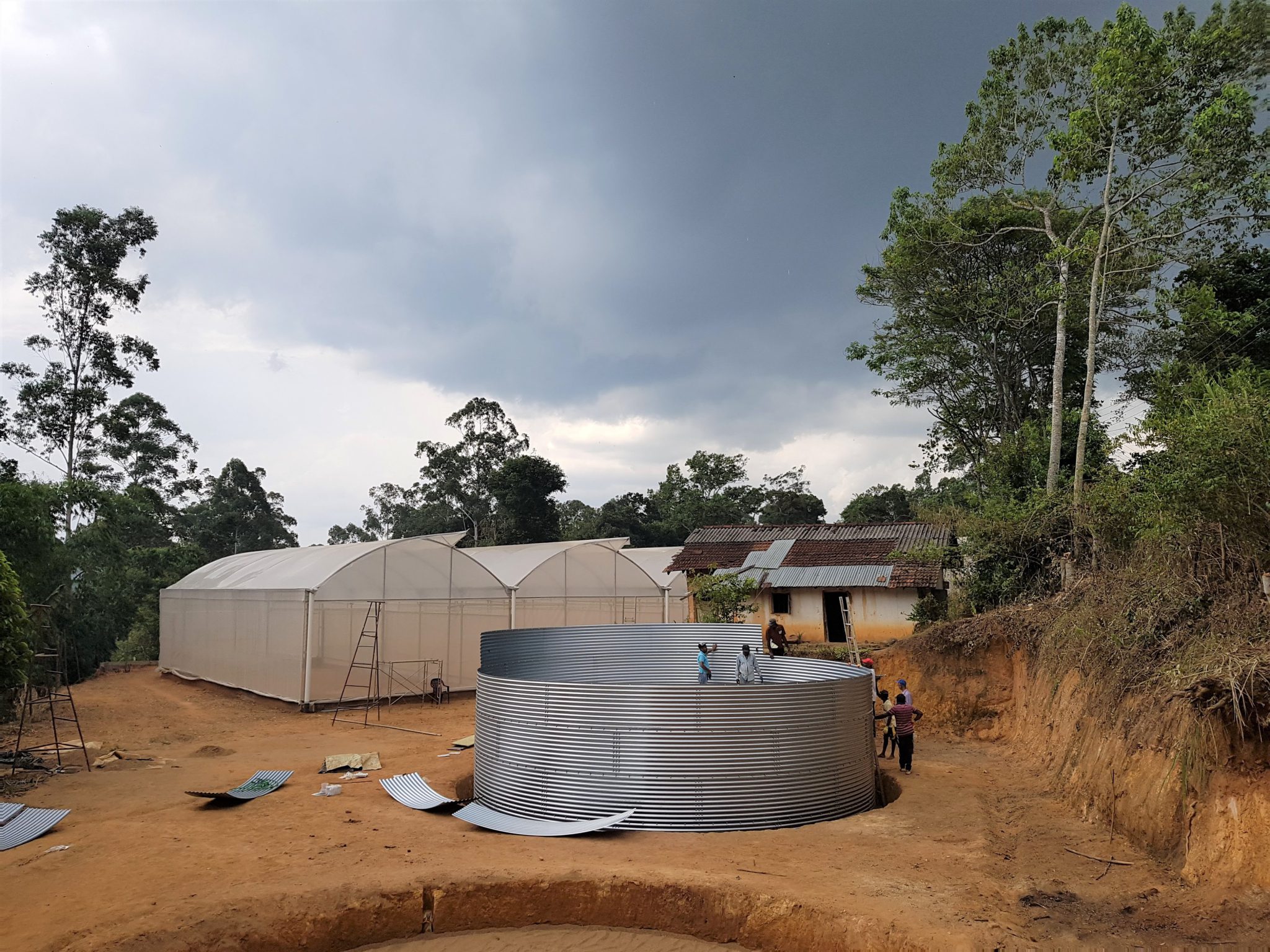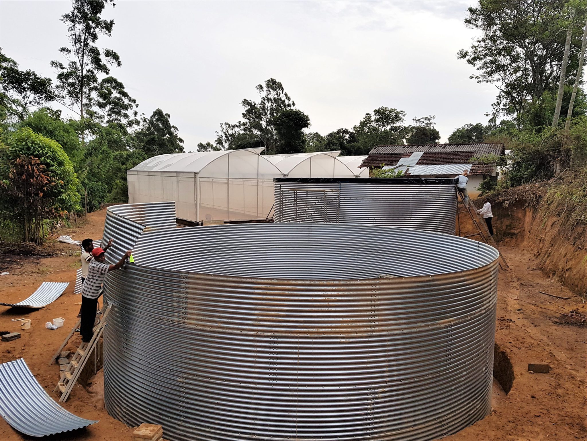 NPI provides on a regular basis technical assistance and supervision all over the world, ensuring the best results for the installation of a tank. Last year one of our technical specialists travelled to Sri Lanka to offer assistance with the installation of two water tanks. A renowned grower ordered two tanks for irrigation of their greenhouse facilities, where fruit and vegetables are grown for mainly export to the Maldives. The customer ordered two tanks of 3,85 meters high, lined with ENPEX FPP 0,75 mm film and completed with tensioned anti-algae covers.