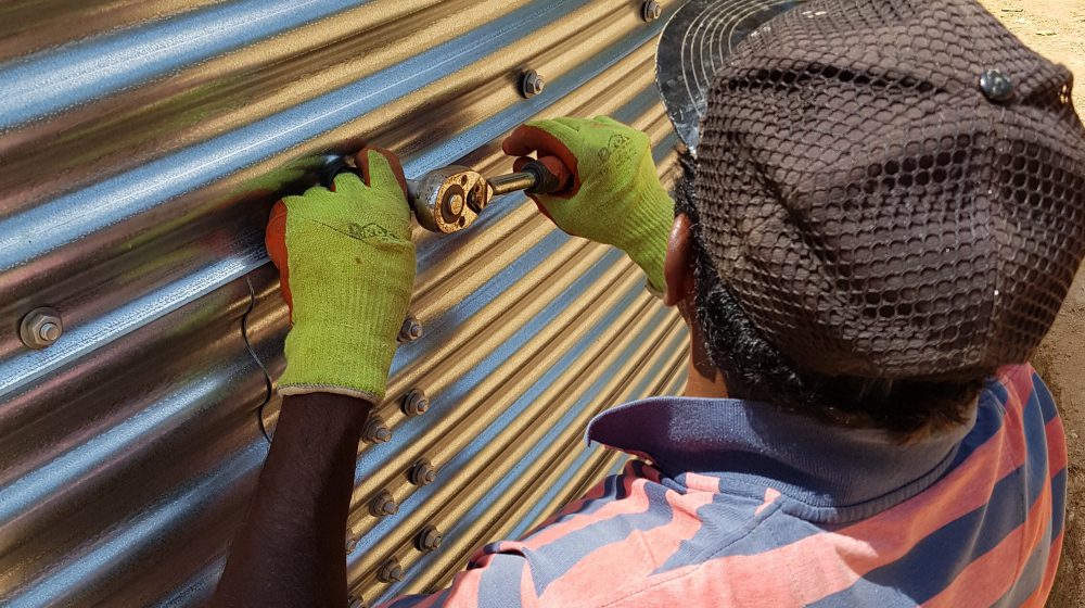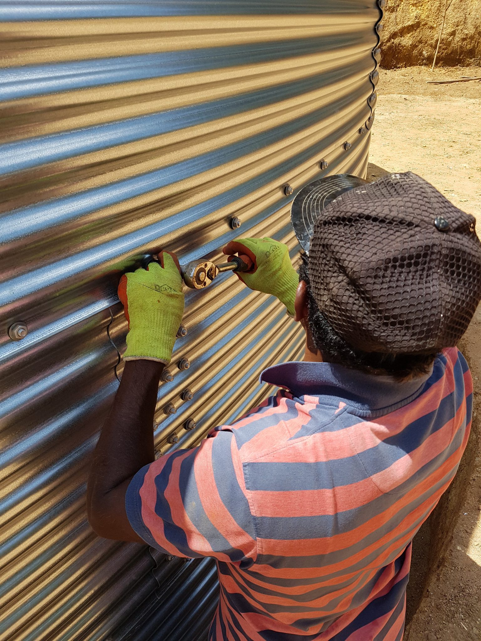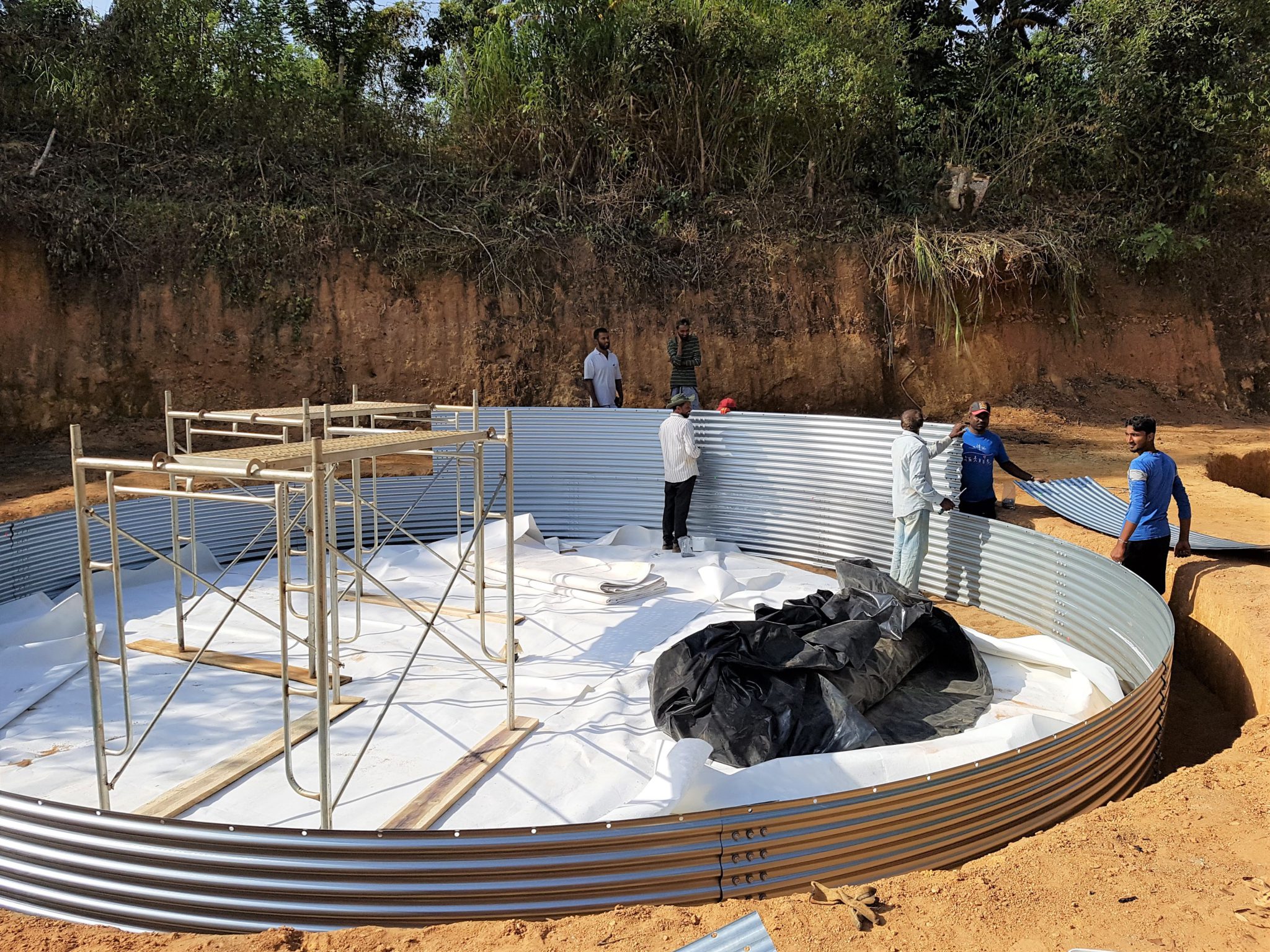 Our tanks are supplied as a prefabricated package with all installation materials included. Installing the metal walls is quick and easy, thanks to the supplied fixing materials and the clear installation instructions. Nevertheless, customers regularly call in our technical assistance and supervision when it comes to the construction of the tanks. Besides the technical support, we also give commercial training to our customers.