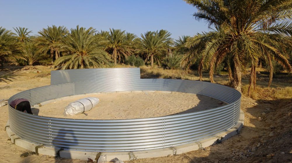 In Tunisia another water tank was installed. This Ø 9,14 meter tank with a height of 2,29 meter was installed at a date farm in the midwest of Tunisia.