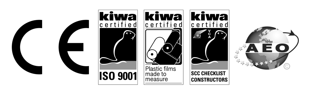 Quality is the foundation for everything we do. The various certifications we have achieved guarantee this. We are KIWA, ISO 9001, CE and VCA certified for the processing of various films, which means we comply with strict international safety and quality standards. Our multiple certifications allow us to carry out processing operations on plastic films on both the work floor and on location under certification. This is extremely valuable for applications where strict standards apply, such as environmental protection and drinking water storage.
